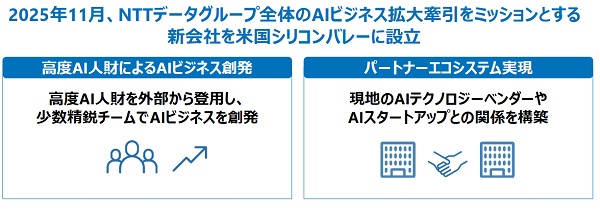 As part of this, NTT DATA will establish a new company in Silicon Valley in November with the mission of driving the expansion of the AI business. The new company will create AI businesses with a small, elite team of highly skilled AI personnel and collaborate with Silicon Valley AI vendors and AI startups, aiming to solve customers’ management challenges and contribute to their business success.