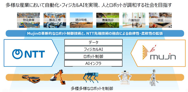 NTT and NTT docomo business have entered into a capital and business alliance with Mujin, a company focused on digital transformation in manufacturing and logistics sites using physical AI and digital twin technology.