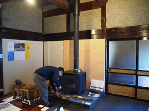 Inside the office. They use local resources, such as a wood stove for heating, to ensure water and energy are available both in normal times and in times of disaster.