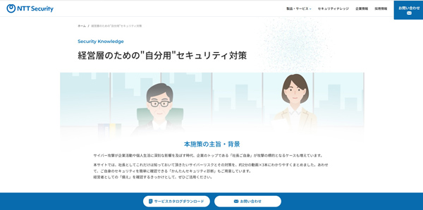 The site’s URL is https://jp.security.ntt/ceo-security-risk-measures/